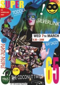1965 Records and dayglo optimism bible Super Super magazine are getting together to have a knees up and play some records on Londons best soundsystem. The first of an occasional party Super65 number 1 is happening next Wednesday March 1st at Plastic People on Curtain Road. Like a copy of Super Super or one of 1965's ltd 7" records it costs a paltry £2.99 to get in. In the Super corner are... The Coconut Twins and Silverlink and the '65 Corner Toddla T (Small Arms Fiya) and Raf Daddy SUPER'65 10PM - 2AM Wednesday 6th March Plastic People 147 - 149 Curtain Road