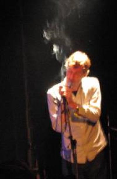 Support act Film School kicked things off, and I spent quite a while deciding whether their Cure stylings and sound were contrived or genuine... but being American ponces (as opposed to British ones) did them some favours and they may be worth watching out for. When The National took to the stage however there was no doubt that they were a cut above. They kicked straight into the new classic Secret Meeting with such power and gusto that the audience was instantly gripped. I was surprised that singer Matt Berninger wasn't the dude on the cover of the debut album... but if Britt Daniel from Spoon is Richie Cunniingham, then this guy is a cross between Crispin Glover and Sam Shepard. Alternately smoking and moodily skulking around the stage... which all made me realise how many bands don't have an instrumentless singer at the moment. This created a real focus for the six piece band, who did seem a lot more of a band (rather than a single vision of a single person) than I had imagined.