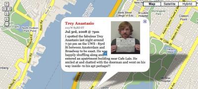 Spotted anyone famous today? Send the details over to Gawker and they'll map it onto their stalker map ....although I know marmot wouldn't be impressed by a sighting of Trey Anastasio.